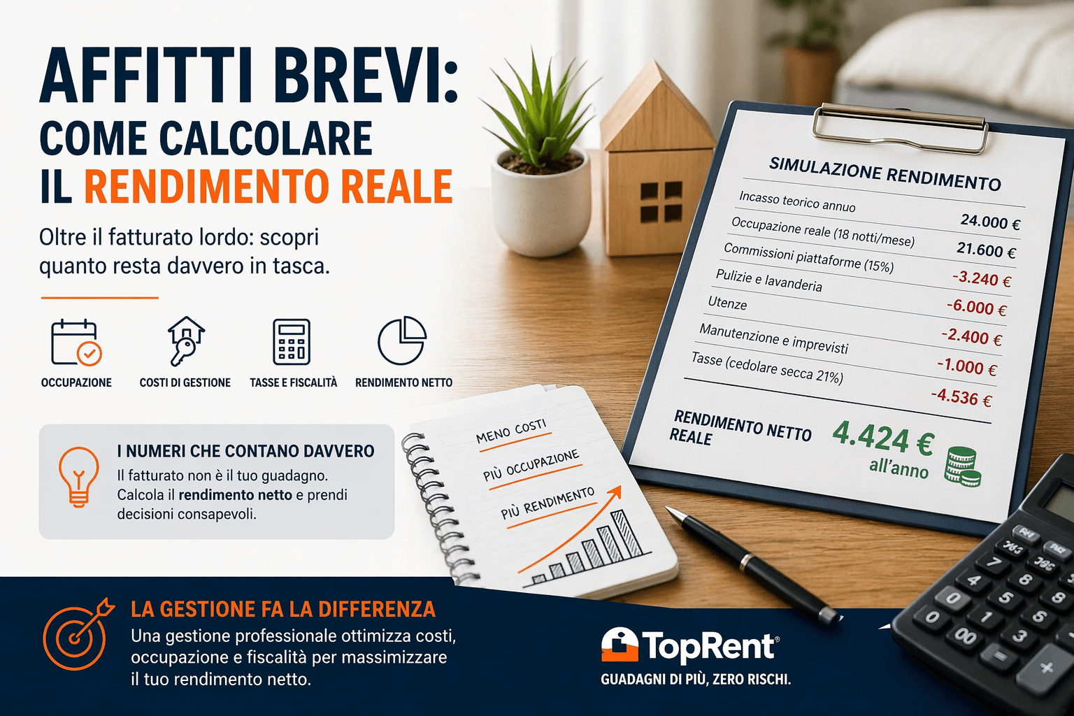 Negli affitti brevi il fatturato è solo l’inizio del ragionamento. È un numero utile, ma non è quello che ti interessa davvero. Quello che conta è quanto ti rimane in tasca a fine anno.