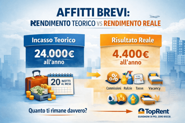 È quello che chiamo il rendimento da screenshot: quello che vedi online, quello che raccontano nei video, quello che si basa solo sul prezzo a notte moltiplicato per i giorni occupati. Peccato che sia una visione incompleta.