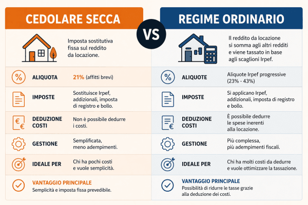 Perché scegliere tra cedolare secca e regime ordinario non è una formalità fiscale. È una decisione che incide direttamente sul rendimento reale del tuo immobile. E se sbagli qui, puoi perdere margine ogni anno senza nemmeno rendertene conto.